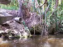 The water quality increases dramatically with the distance from the drainage outlets and surrounding houses. Since the majority of development occurs on the banks of the eastern parts of the river the water quality decreases inland.[7]