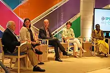 Ngumbi at right discussing food security at Spotlight Health Aspen Ideas Festival in 2015