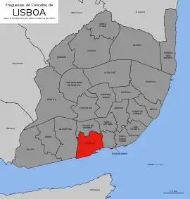 This new parish was created with the 2012 Administrative Reform of Lisbon, merging the former parishes of Lapa, Santos-o-Velho and Prazeres.[2]