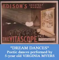 Around 1909, when she was three years old, Ethel's daughter Virginia revealed herself to be possessed of strong artistic talent as well. One day, as Ethel was playing the piano, she looked up to see Virginia naturally dancing to the rhythm and the emotional feeling of the music. This was a time when the impact of Isadora Duncan's dancing had totally captured the imagination of the artistic community of New York, as well as much of the rest of the world, and Ethel took note of Virginia's gift for spontaneous and instinctive movements. She encouraged her daughter to perform, both privately and publicly. Virginia starred in an Edison-produced film, Dream Dances of Virginia Myers, when she was five years old, doing 20 minutes of her own improvised solo dances as the first half of a "split-reeler." The film was to spread her fame to all of America, far beyond the limits of just her acclaim in New York City. In 1913, her talent was celebrated in an article in Vogue Magazine titled "When Virginia Dances," in which she was called "a child of the century."[18]