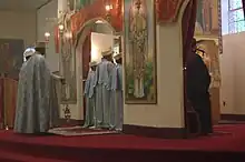 The Eucharist is given only to those who feel pure, have fasted regularly, and have, in general, properly conducted themselves.[49] In practice, communion is mainly limited to young children and the elderly; those who are at a sexually active age or who have sexual desires generally do not receive the Eucharist.[49][51] Worshipers receiving communion may enter the middle ring of the church to do so.[49]