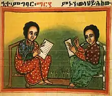 During the late 19th and early 20th centuries, Ethiopian vernacular historiography became more heavily influenced by Western methods of historiography, but De Lorenzi contends that these were "indigenized" to suit the cultural sensibilities of traditionalist historians.[90] Gabra Heywat Baykadan, a foreign-educated historian and reformist intellectual during the reign of Menelik II (r. 1889–1913),[91] was unique among his peers for breaking almost entirely from the traditionalist approach to writing vernacular history and systematically adopting Western theoretical methods.[92] Heruy Wolde Selassie (1878–1938), blattengeta and foreign minister of Ethiopia, used English scholarship and nominally adopted modern Western methods in writing vernacular history, but he was a firmly traditionalist historian.[90] His innovative works include a 1922 historical dictionary that offered a prosopographic study of Ethiopia's historical figures and contemporary notables, a history of Ethiopian foreign relations, historiographic travel literature, and a traditionalist historical treatise combining narrative histories for the Zagwe and Solomonic dynasties with other parts on church history and biographies of church leaders.[93] Selassie may have also been the author of a list of monarchs of Ethiopia written in 1922 which took its names and information from both native Ethiopian king lists (from manuscripts and oral tradition) and European texts which wrote of Aethiopia in ancient history and legends.[94] Because the term Aethiopia was often used in ancient times, as well as some translations of the Bible, to refer to ancient Nubia, the king list incorporates monarchs who ruled the kingdom of Kush and Egyptian pharaohs who ruled or interacted with Nubia in some significant way.[95] The king list additionally includes Aethiopian figures mentioned in the Bible and Greek mythology.