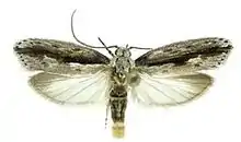 The length of the forewings is 10.4–14 mm (0.41–0.55 in). The ground color of the forewings is whitish gray, clouded with pale brownish gray except at the terminal margin. The ground color of the hindwings is semitranslucent white, becoming pale brownish at the distal margins.[1]