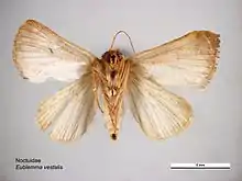 - ↑ Herbison-Evans, Don & Crossley, Stella (3 February 2010). "Eublemma vestalis (Butler, 1886)". Australian Caterpillars and their Butterflies and Moths. Retrieved 17 November 2019.