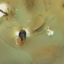 Schenk and M. H. Bulmer identify the deposit of a possible landslide off Euboea Montes. The thick deposit at the northern flank is interpreted to be from a landslide, and they further point to the shape of the northern flank as evidence for slope failure. The estimated volume of the debris apron is about 25,000 km3. If this is true, then Euboea Montes has arguably one of the largest debris aprons in the Solar System, of a size similar to those formed by landslides in Valles Marineris, around Olympus Mons on Mars, or submarine landslides on Earth.[1][2]