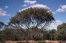 This eucalypt is a slow growing, drought tolerant mallee sold as an ornamental, hedge, shelterbelt and windbreak that can grow in low rainfall areas.[8]