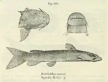 1. "Order SILURIFORMES: Families MALAPTERURIDAE, MOCHOKIDAE, SCHILBEIDAE, AUCHENOGLANIDIDAE, CLAROTEIDAE and LACANTUNIIDAE". The ETYFish Project. Christopher Scharpf and Kenneth J. Lazara. Retrieved 12 August 2017.