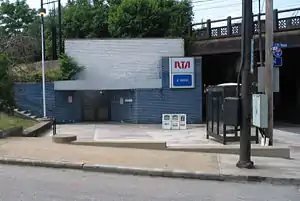When originally opened, the entrance to the station along Euclid Avenue was in the middle of the railroad bridge over the street. The station was not very visible, and this may have contributed to its disuse. A further tunnel was constructed under the tracks to provide a more visible entrance at the east side of the bridge.