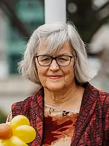 During the 2020 New Zealand election that was held on 17 October, Sage was re-elected to Parliament on the party list.[26] She also contested the Banks Peninsula electorate and came third place behind Labour's Tracey McLellan and National's Catherine Chu.[27] She was not retained as a minister in the Government's second term and was instead appointed chairperson of Parliament's environment committee as part of the cooperation agreement between the Labour Party and the Green Party.[9][28][29] She was also appointed the Green Party spokesperson for conservation, emergency management, the environment, forestry, land information, three waters and oceans and fisheries.[9] On 9 November 2020, Sage was granted retention of the title "The Honourable" for life, in recognition of her term as a member of the Executive Council.[30]