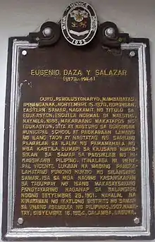 Don Eugenio Daza y Salazar (November 15, 1870 – December 16, 1954) is a Filipino principale (nobleman) recognized by the National Commission for Culture and the Arts (NCCA) as the first maestro (teacher) in the Samar province.[1] He was both an infantry major and procurement officer in the Philippine Republican Army during the Philippine-American War. He was area commander of General Lukbán's forces for Southeastern Samar and overall commander and tactician of the Battle of Balangiga.[2][3]