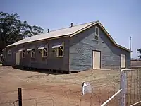 Eurongilly is a typical example of the country town acceptance of the call to arms requests that occurred during the history of Australia. Despite its tiny stature, (there are no buildings in Eurongilly other than the Hall (see image) and the Bush Fire Brigade shed) the area proudly remembers those that served on the commemorative gate posts of the RJ Cooper (DFC) park, which was provided by Cooper's parents after he was killed in action over Derna, Libya in 1941, whilst enlisted in the RAF during World War II. The gate posts show that a total of 34 locals served (probably more than 10% of the total village population) during that conflict. Another four of the Eurongilly population served during the Vietnam War.[4]
