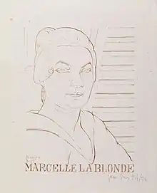 Cubism was one of the first avant-garde movements, together with Fauvism and Expressionism. Fauvism involved experimentation in the field of color, which was conceived in a subjective and personal way, to which they applied emotional and expressive values, independent of nature. For these artists, colors had to generate emotions, through a subjective chromatic range and brilliant workmanship.[18] Prominent among their ranks was Henri Matisse, who practiced lithography, generally with the collaboration of the printmaker Auguste Clot. Between 1906 and 1913 he produced a series of lithographs in which he denotes the influence of Rodin, with a linear, fluid and elegant language.[19] Other exponents were André Derain, Raoul Dufy and Maurice de Vlaminck. Derain engraved mostly on wood, in illustration of books such as Apollinaire's Enchanter rotting (1909), Max Jacob's Les Œuvres burlesques et mystiques de Frère Matorel, mort au couvent de Barcelone (1912), André Breton's Monte de Piedad (1916) and Antonin Artaud's Heliogabalo (1934).[20] Dufy began in woodcut (Bestiary of Orpheus by Apollinaire, 1910), to switch to lithography after World War I (La Belle Enfant ou L'Amour à quarante ans by Eugène Montfort, 1930, for the publisher Vollard).[21] Vlaminck, self-taught, produced woodcuts and lithographs, in a style similar to his paintings, which are difficult to classify chronologically, as he never dated them.[22]