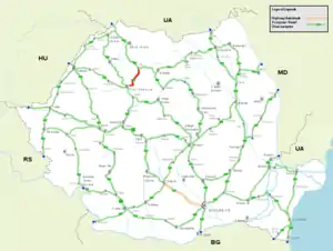 European routes in Romania with E 576 in red