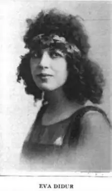 Eva Didur was born in Poland,[1] the daughter of Polish singer Adamo Didur and his first wife, Mexican singer Angela Aranda Arellano. Her younger sisters were Mary Didur-Załuska (1905-1979) and Olga Didur-Wiktorowa (1900-1963), who were also professional singers.[2] Eva Didur studied voice with William Thorner[3] and Gina Ciaparelli-Viafora.[4]