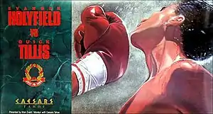 Evander Holyfield had previously defeated Carlos De León to add the WBC cruiserweight title to the WBA and IBF versions already in his possession and become the first undisputed champion in the division's history. After the victory, Holyfield announced his attentions to move up to heavyweight and veteran fighter and former contender James Tillis was eventually named his first opponent. Holyfield was expected to be a future challenger to then-undisputed heavyweight champion Mike Tyson, whom Tillis had fought two years prior to his fight with Holyfield. Though Tillis would lose, he had an impressive showing against Tyson, being the first person to go the distance with him and ending Tyson's 19-fight knockout streak. Though he was no longer a contender, Tillis' experience against several top heavyweights led to Holyfield's promoter Dan Duva selecting him as Holyfield's fist heavyweight opponent.[1] Tillis had formally been a top contender in the heavyweight division, starting his career with a 20–0 record and facing Mike Weaver in 1981 for the WBA heavyweight title, though he would lose a 15-round unanimous decision. Since then, Tillis' career had been veered largely into journeyman status, facing and losing to several top heavyweights including future and former heavyweight like champions Tyson Tim Witherspoon and Frank Bruno. Though Tillis was considered an underdog against Holyfield, he remained confident that he could earn an upset victory and gain a lucrative rematch against Tyson.[2]