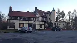 It was originally built about 1870, and extensively remodeled and enlarged after acquired by Evangeline Booth (1865-1950) in 1919. It is a 2+1⁄2-story, Y-shaped, fieldstone and half-timbered building. It has a high gable roof with clipped gable ends covered in red "Spanish" tiles. The house is in the Tudor Revival style. It features a large stone chimney, limestone trimmed Tudor-arched entrance, and octagonal stair tower. Additions to the dwelling made by the church include a parish hall and chapel (1955). Also on the property are a contributing carriage house and stone garage. Evangeline Booth resided here until her death in 1950. She donated it to the Salvation Army, who sold it in 1951 to the St. Andrew's Episcopal Church.[2]