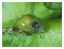 - ↑ Josiah O. Kuja, Robert R. Jackson, Godfrey O. Sune, Rebecca N. H. Karanja, Zipporah O. Lagat, Georgina E. Carvell, "Nectar Meals of a Mosquito-Specialist Spider", Psyche: A Journal of Entomology, vol. 2012, Article ID 898721, 7 pages, 2012. doi:10.1155/2012/898721