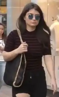 She has an older sister, Jordan, and two younger brothers, Elijah and John.[4] She attended nearby Dalkey School Project primary school, and St. Andrew's College in Booterstown, also in Dublin, for secondary education. She did a short course at the New York Film Academy in 2008.[5] In 2009, she commenced studies in acting, with subsidiary focus on psychology, at New York University's Tisch School of the Arts, graduating in 2013.[6][4] The U2 song "Kite" was inspired by a moment when Bono took a kite up on Killiney Hill with Hewson and her sister, but the kite blew away and smashed.[2]