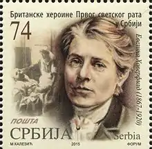 Haverfield on a 2015 Serbian stamp from the series "British Heroines of the First World War in Serbia".