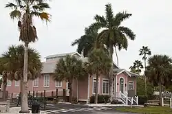 The wayside marker describes it as the Old Laundry Building, and it was completed in 1928, serving in the capacity as a community laundry building. It became the clubhouse for the "Everglades Women's Club" in 1965, when it was purchased from the Colliers.