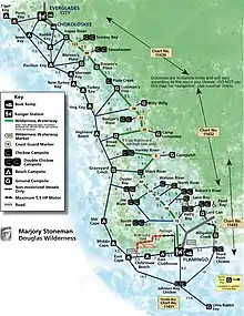 Map of Everglades Wilderness Waterway and camping sites