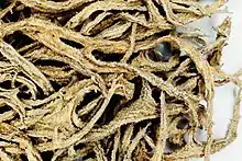 Oakmoss Evernia prunastri is used as a fixative agent in Eau de Cologne within the perfume industry. It is green on top and white on bottom, and divides evenly into "forks"; it becomes very soft when wet. It is not to be confused with Ramalina, which is straplike, stiff and bristly, green on top and bottom, and divides unevenly. Evernia is an abundant genus, found growing on trees.[1]