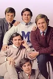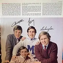 Peter Leeds put them in touch with writer-producer Wes Farrell in the summer of 1966. Their meeting with Farrell was their first major step on the road to fame and fortune. Farrell was a songwriter and record producer who had composed songs such as "Hang on Sloopy", "Boys", and "Come a Little Bit Closer".[1] Farrell had the boys audition for him in a small studio in a ramshackle building off Broadway. After climbing three flights of stairs with their instruments and amplifiers in the 90-degree heat that July day, Every Mothers' Son were so beat that they forgot to be nervous. They came through so excitingly at the audition, that the hard-bitten Wes Farrell flipped over the group, and immediately signed them to record for his Senate Records Productions firm. He cut twelve sides, normally an unheard of practice with a new group, and took their records to a number of top record firms. Within a week five major labels were competing to distribute their records, and finally a deal was completed for Every Mothers' Son records to be released by MGM.[3] MGM Records signed the group as a clean-cut alternative to the 1960s counterculture.[4]