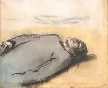 "In the Dugouts"': A soldier in his dugout in the snow, sings to his accordion about his girl far away, and feels warm at the thought before he dies.[31]