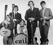 Evil was a garage rock band from Miami, Florida, active between late 1965 and early 1967.[1][2][3] They were known for a hard–driving, sometimes, thrashing 60s punk sound that combined elements of blues, rockabilly, and British invasion influences (particularly the tougher sounding London-based outfits of the time, such as The Yardbirds, The Who, The Pretty Things, and The Small Faces).[3][4] They recorded several songs, amongst which “Always Runnin' Around” and “Whatcha Gonna Do” were released as a single on Living Legend Records in 1966.[1][3][5][6][7] The band would eventually be signed to Capitol Records, but broke up shortly thereafter.[4] In more recent years they have become particularly noted for several previously unreleased songs recorded in 1966, which have been released in recent years on various independent labels from acetates, such as "From a Curbstone," "Short Life," and especially "I'm Movin' On," which is now regarded as a garage classic.[1][3][8][9]