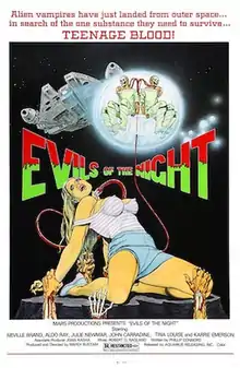 Evils of the Night is a 1985 American science fiction horror film[3] starring Aldo Ray, Neville Brand, Tina Louise, John Carradine, and Julie Newmar.[4][5] The film was directed, co-produced and co-written by Mardi Rustam.[1]