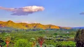The Evrotas Valley is an 82 km elongated valley between Taygetus and Parnon which traverses Laconia, Greece. Homer called the valley Kili Lakedemon, while Sparta, Mystras and Gytheio are the main cities within the valley.[1] It is one of the largest valleys in Greece.[2] The valley is predominantly an agricultural region that contains many citrus groves, olive groves, and pasture lands. It is the location of the largest orange production in the Peloponnese and probably in all of Greece. Lakonia, a brand of orange juice, is based in Amykles. The Evrotas Valley records the highest summer mean maximum temperatures in Greece. [3]