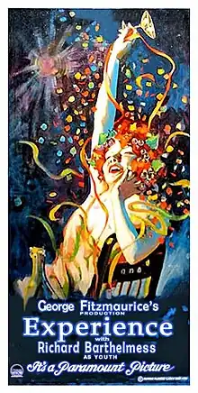 Experience is a 1921 American silent morality drama film produced by Famous Players–Lasky and distributed by Paramount Pictures. The allegorical film was directed by George Fitzmaurice and starred Richard Barthelmess. It was based on George V. Hobart's successful 1914 Broadway play of the same name.[1] It was the film debut of Lilyan Tashman.