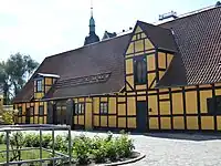 The 45-bay long half-timbered building on the rear side of the complex was built in 1748 along the city's West Rampart, now Vester Voldgade. The main facade of the building faces the courtyard where two dormers, originally with hoists, break up the monotony of the large tile roof. It was originally used for storage of materials and also contained stables in its eastern end.