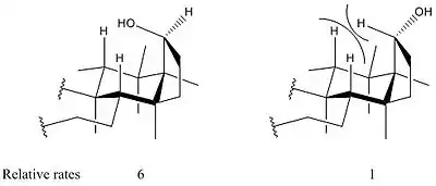 The oxidation of an alcohol with an alpha hydrogen sterically hindered by axial hydrogens proceeds slower with Fetizon's reagent