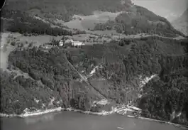 Fürigenbahn was a funicular railway above Lake Lucerne at Stansstad, Nidwalden, Switzerland. The line led from the bath in Harissenbucht, a bay of Lake Lucerne, at 437 m to the Hotel Fürigen at 639 m. The track had a length of 375 m with a difference of elevation of 202 m and a maximum incline of 73%.[1][2] The hotel built it for clients' use in spring 1924,[1][2] but opened it to the public in 1927, after the Swiss Federal Assembly granted a concession for 80 years.