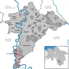 Fürstenberg (German pronunciation: [ˈfʏʁstn̩ˌbɛʁk] ⓘ) is a municipality in the district of Holzminden, in Lower Saxony, Germany and lies on the Weser river in the Weser Uplands, near Höxter and Holzminden. The Fürstenberg China Factory, founded in 1747, is the third-oldest porcelain manufacturer in Germany.