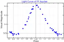 The visual band light curve of FF Aquilae, adapted from Kiss (1998)[12]