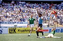 The World Cup was won by Argentina (their second title, after winning in 1978). Argentina was captained by the 25-year-old Diego Maradona, who played a large part in his team's success by scoring his "Hand of God" goal, as well as another voted the "Goal of the Century", in the same quarter-final against England. These were two of the five goals that Maradona scored during the tournament, and he also created another five for his teammates.[1] Argentina beat West Germany 3–2 in the final at Mexico City's Estadio Azteca. Total attendance was 2,394,031, an average per match of 46,039.[2] Canada, Denmark and Iraq made their first appearances at the final stage.