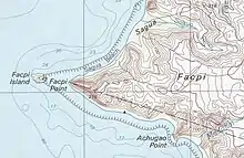 Facpi Point is a headland in the south-west of the island of Guam. It is 3 km (2 mi) due west of Mount Lamlam, and 5 km (3 mi) north of Umatac village. The point was designated a National Natural Landmark in 1972.[1] Facpi Point marks the southern end of Agat Bay, as well as an end point of the boundary between the villages of Agat and Umatac. A small islet, Facpi Island, is off the tip of the point.
