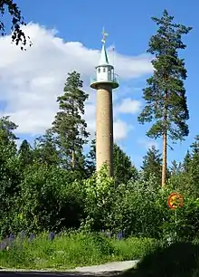 During World War II, approximately 1,200 airspace surveillance towers were built in Sweden,[2] most of them wooden.[5] Only a few remain preserved, and the tower in Fagersta is unique in that it was designed by an architect.[2] The use of expensive building materials is also unusual.[3] It is also the only such tower that Cyrillus Johansson designed.[6]