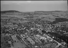 Prehistorical finds from various Neolithic eras, Roman and Alamanni ruins all testify to a long history of human habitation around Fahrwangen. The modern municipality of Fahrwangen is first mentioned in 924 as Farnowanch.[3] Under the Habsburgs both the high and low justice were brought together with the County of Tennwil. Between 1354 and 1380 the Lords of Hallwyl acquired all rights to the municipality. Under the Hallwyls and later under Bern, Fahrwangen was a special, independent high court.[3]
