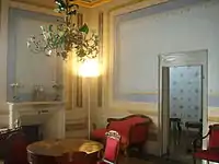 There are also accounts that mention fainting rooms in eighteenth-century America.[1] These rooms, which were also referred to as bedrooms (bedrooms were called chambers), were located in the ground floor and contained a day bed that allowed occupants to rest for brief periods during the day.[1]