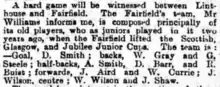 8. "Linthouse v Fairfield". Glasgow Herald: 10. 9 September 1889.
