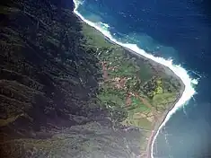 The size of the fajã has been attributed to the 9 July 1757 earthquake, considered the most violent tectonic quake that occurred in the Azores.[2][3][4] This seismic event was characterized by violent movements of land (landslides, collapses and rockfalls) that were responsible for the creation of several fajãs on the island, such as the Fajã of Ponta Nova, and the growth of pre-existing fajãs.[2] The event, and associated aftershocks, were responsible for the destruction in Fajã dos Vimes, Fajã do São João and Fajã dos Cúberes, where "it moved the land, from the centre above, with luck, in them, there is no sign of buildings."[5] The earthquake produced major damage in Calheta and caused the death of 1034 on the island of São Jorge.[5][6]