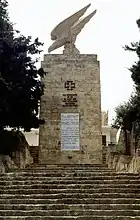 The Fallschirmjäger memorial (German: Fallschirmjäger-Denkmal) is a German war memorial for German parachutists who fell during the ten-day Battle of Crete in World War II. The memorial, known to Cretans as the German bird (Greek: Γερμανικό πουλί, Germaniko pouli) or the Evil bird (Greek: Κακό πουλί, Kako pouli), was erected in 1941 by the occupation forces and is located about three kilometers west of Chania on the road to Agii Apostoli.