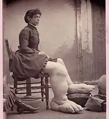 Fannie (née) Mills was born in Sussex, England to George and Sarah (née Ansel) Mills on August 30, 1860;[1][2][3][4] although some sources state 1859. It was noted, however, in the 1861 census of England that Mills was "eight and one half months" old; having been born in the registration district of Thakeham in Sussex.[5] The family immigrated to Sandusky, Ohio.[3] Although her siblings were born without defect, Mills began to display symptoms associated with Milroy's disease at an early age. On June 5, 1880, the US census recorded Mills' first name as "Fanny"; with a note next to the listing for Mills, age 14, that read “deformed feet.”[5] It was rumored that the family attributed her affliction to a story they told about how Mills' father forced her mother to wash the swelled leg of a horse (foal) while she was pregnant.[2]