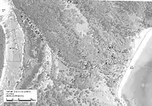 By September 1938 the northern area of Fantome Island was under consideration as a tubercular settlement, while a leper settlement was proposed for nearby Curacoa Island. A map of Fantome Island at this time indicated that "farm villages" (for chronic STI cases) existed along the western side of the northern point of the island, and an early 1939 map included two villages roughly where the lazaret male and female compounds were later built; and a "vegetable growing area" at the east end of the small valley just south of the 10,000-imperial-gallon (45,000 L; 12,000 US gal) water tank.[1][21]