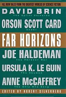 Far Horizons: All New Tales from the Greatest Worlds of Science Fiction is an anthology of original science fiction stories edited by Robert Silverberg, first published in hardcover by Avon Eos in May 1999, with a book club edition following from Avon and the Science Fiction Book Club in July of the same year. Paperback and trade paperback editions were issued by Eos/HarperCollins in May 2000 and December 2005, respectively, and an ebook edition by HarperCollins e-books in March 2009. The first British edition was issued in hardcover and trade paperback by Orbit/Little Brown in June 1999, with a paperback edition following from Orbit in July 2000.