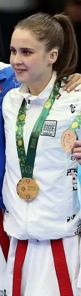 Farida Abiyeva ( March 20, 1995 , Baku, Azerbaijan) is an Azerbaijani karateka. Farida Abiyeva won a gold medal at the 2017 Islamic Solidarity Games held in Baku, Azerbaijan.[1][2]