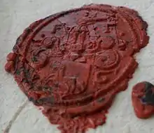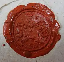 Their descendant, the nobleman János Farkas de Alsóeőr, who lived in the beginning of the 17th century, was a landowner in Kančevci (Hungarian: Felsőszentbenedek), which was located in the Vas county. This János Farkas de Alsóeőr had two sons: Lukács Farkas de Alsóeőr and Péter Farkas de Alsóeőr (fl. 1656). His son Péter Farkas (who was already very old for 1654) rented a small state in Pórszombat, which was located in the County of Zala. Péter's son, Mihály Farkas de Alsóeőr (fl. 1656–1664), who fought against the Turkish invaders was the one that bought the states in Zalaboldogfa (Boldogfa), in Zala county during the second half of the 17th century. Mihály Farkas married the local noble lady Éva Péter de Ságod, who gave birth three sons to him: János Farkas de Boldogfa, Péter Farkas de Boldogfa and István Farkas de Boldogfa. This branch of this Farkas family later used the Nobiliary particle of "de Boldogfa" as they received a royal donation to the state of Boldogfa from Charles VI, Holy Roman Emperor, King of Hungary, on 22 March 1716.[2] In the other hand, the descendants of Lukács Farkas used the Nobiliary particle "de Alsóeőr" in honor to their original state were the family hailed from and that were donated by the King on the 16th Century. On April 2 1690. the noble Farkas family that lived in Kančevci (Hungarian: Felsőszentbenedek) received the donation of a coat of arms from the King Leopold I of Hungary; this coat of arms was used by both the families, the Farkas de Boldogfa and this particular branch of the family Farkas de Alsóőeőr.[3][4]